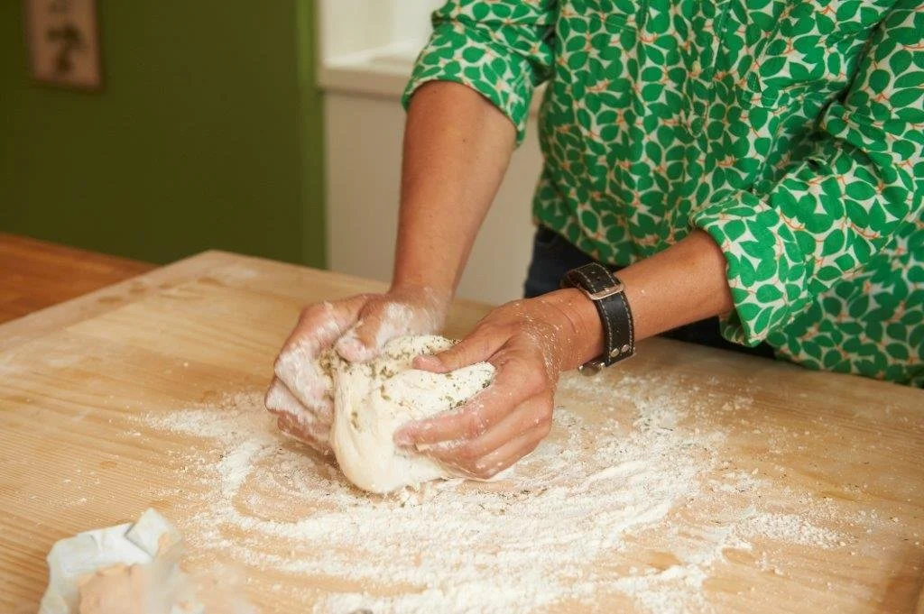 Und dann bettet sie sanft die Sauerteiglaibe in ihr Gärkörbchen zur Ruhe, während die verschieden geformten und verfeinerten Ciabattas schon im Steinbackofen schwitzen und den ganzen Raum zum Duften bringen. „Manche schneiden die rohen Brote vorm Backen ein, aber ich finde es schöner, wenn sie unkontrolliert reißen“, sagt sie und alleine die Vorstellung an das noch heiße Backwerk lässt das Wasser im Munde zusammenfließen.