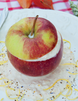 Die Äpfel waschen. Den Deckel abschneiden. Den Apfel aushöhlen, dabei eine stabile Wand stehen lassen. Mit etwas Zitronensaft beträufeln. Das Fruchtfleisch pürieren. Mit Quark, Zucker und Vanillezucker und dem restlichen Zitronensaft verrühren. Die Masse in die ausgehöhlten Äpfel füllen.